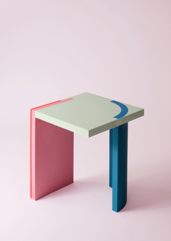 The tables were also subjected to a set of ‘rules.’ The tabletop is a square with the same thickness as the table legs. Three pieces, two rectangular, support each table but have varied thicknesses and diameters. Each has a unique form or structure. The whole thing is a kaleidoscope of graphic motifs and colour, making it an artistic display of experimental acrylic side tables.